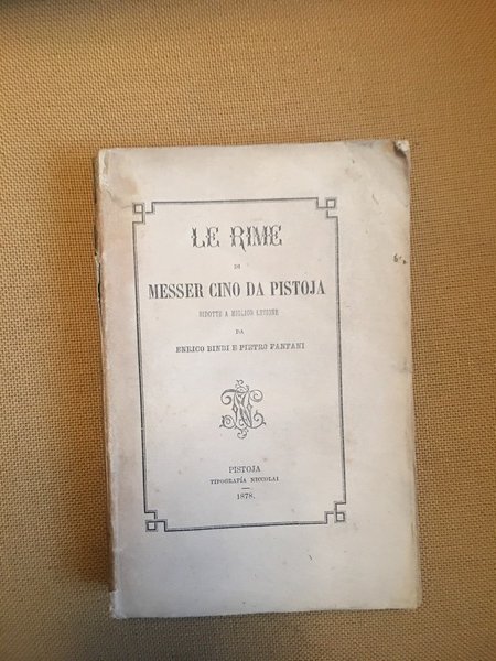 Le rime di Messer Cino da Pistoia ridottew a miglior lezione da Enrico Bindi e Pietro Fanfani