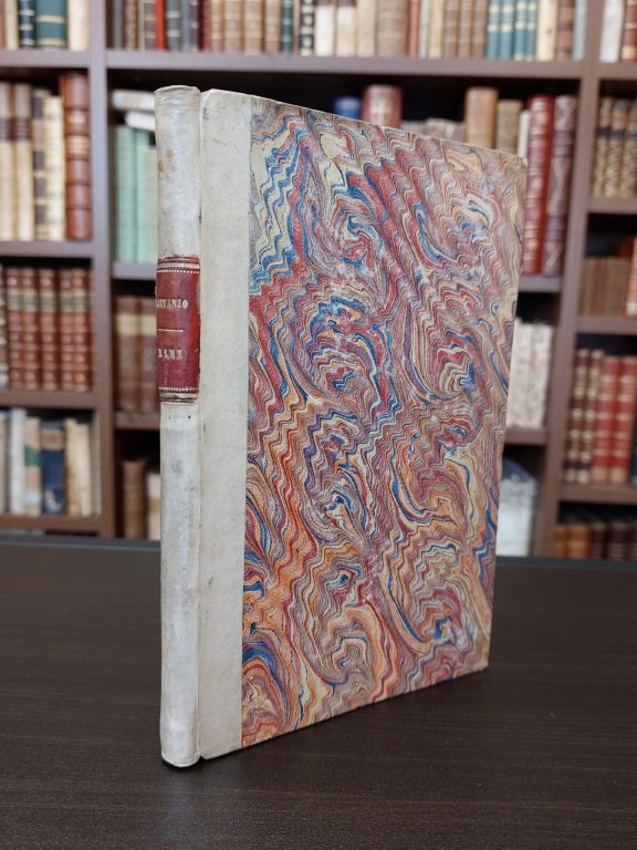 <span style="font-style: normal;">In-16° (cm. 18,4), legatura del tardo XIX secolo in mezza pelle con titolo in oro su tassello rosso al dorso, risguardi in carta decorata; pp. XVI 107 [5] in barbe, in stato molto buono (lievissime e sporadiche fioriture). Stemma tipografico al colophon ed eleganti testatine, capilettera e finalini. Quarta edizione&nbsp;«</span><i>delle passate molto più illustrata ed accresciuta. All'illustrissimo ed eccellentissimo signore Giovambattista Carminati, patrizio veneto</i>». Ottimo esemplare. (NA2)