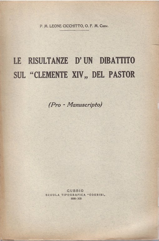 LE RISULTANZE D'UN DIBATTITO SUL CLEMENTE XIV DEL PASTOR ( PRO MANUSCRIPTO )<BR><BR><BR><BR><BR><BR>
