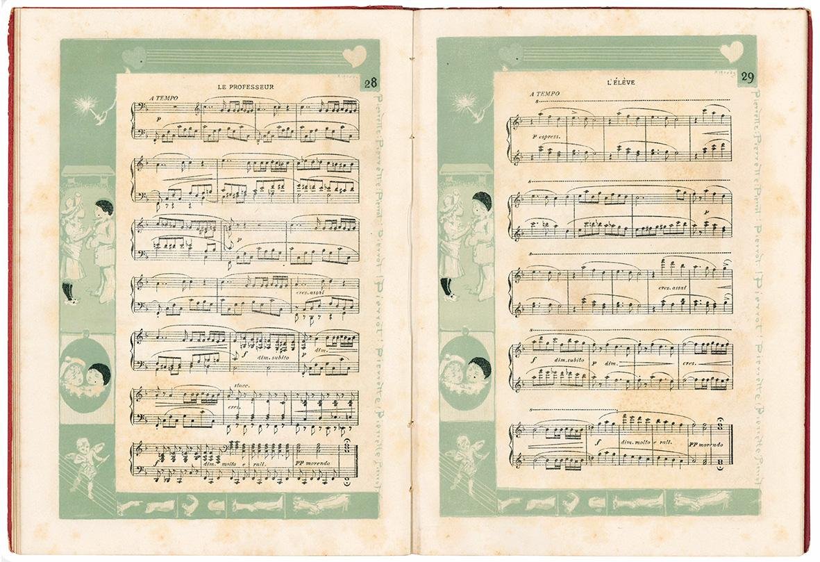 Le Roman de Pierrot et de Pierrette. Historiettes Musicales par J. Burgmein. Sérénade de Pierrot à Pierrette; Duo Amoureux; Bal de Noces; Cortège Nuptial. Illustrées par A. Edel.