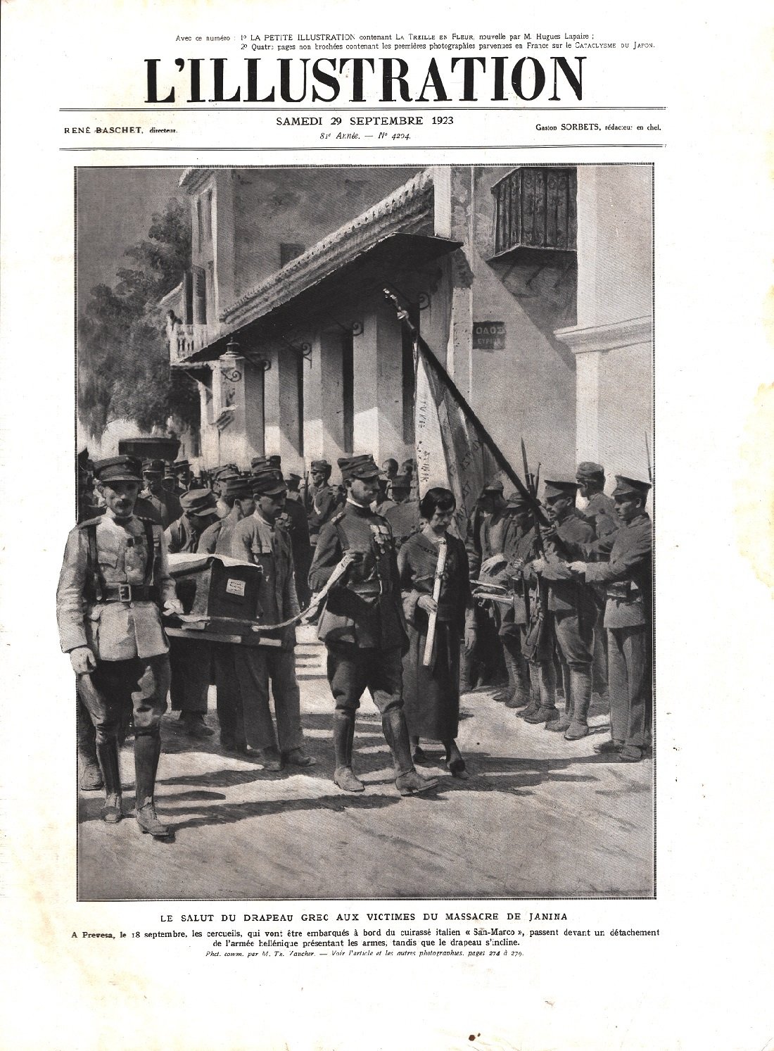 Le salut du drapeau grec aux victimes du massacre de Janina. Immagine 1923