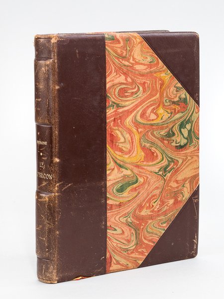 Illustrations de Joe Hamman, un des 974 exemplaires sur papier de Rives numérotés (n°458), 1 vol. grand n-8 carré reliure demi-basane à coins marrons, dos à 2 nerfs, Editions Littéraires de France, Paris, 1946, 210 pp. Les nombreuses illustrations, joyeuses et colorées, de Joë Hamman, ne sont jamais vulgaires. Dessinateur et illustrateur, Joë Hamman (pseudonyme de Jean Hamman, 1883-1974) fut aussi un acteur et réalisateur, créateur du "western français" au temps du cinéma muet. Son trait rappelle celui de Jean Bruller, de Marcel Jeanjean ou Joseph Hémard. Etat très satisfaisant (reliure un peu frottée, qq. rouss. sur tranches, très bon état par ailleurs) pour cette édition illustrée du Satyricon, dans la traduction de Charles Héguin de Guerle.