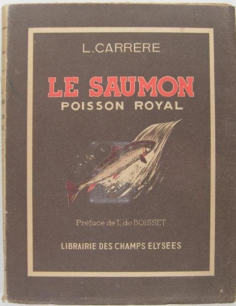 Librairie des Champs-Elysées, 1943. Grand In-8 broché, couverture illustrée en couleur, 173 pages, bien complet de la planche couleurs volante, 46 figures dans le texte. L’un des ouvrages de Louis Carrère le plus difficile à rencontrer : un traité complet de la pêche du Saumon, passant en revue les diverses méthodes pour le pêcher (au lancer lourd, au moulinet à tambour fixe, à lover, à la mouche.) et nous indique les rivières à saumons. Préface de L. de Boisset. Gomendy, p. 47.