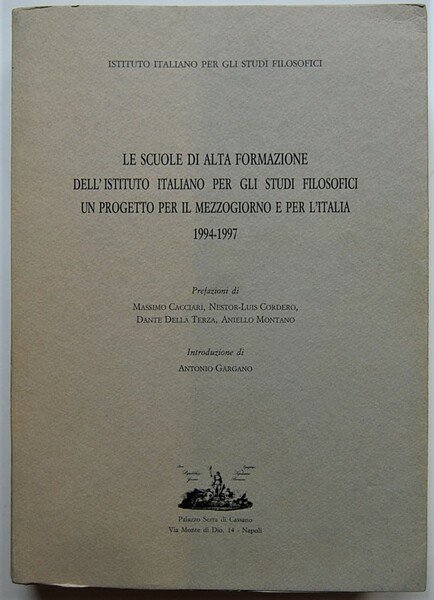 LE SCUOLE DI ALTA FORMAZIONE DELL'ISTITUTO ITALIANO PER GLI STUDI FILOSOFICI. UN PROGETTO PER IL MEZZOGIORNO E PER L' ITALIA 1994 1997.