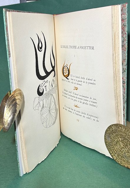 In-4° (280 x 185 mm.), pp. 69, (2), 7 acque forti di Jacques Herold, elegante legatura posteriore in mezzo marocchino arancio, dorso liscio, titolo in oro disposto verticalmente con banda mosaicata in pelle gialla, taglio superiore in rosso e giallo che riprende il disegno della legatura, brossura editoriale conservata all'interno. Edizione originale limitata a 119 esemplari e firmati dall'autore e dall'illustratore, uno degli 80 'sur velin du Marais, contenant les eaux-fortes en noire', il nostro è l'esemplare n. 29. Jacques Hérold. Uno dei più importanti surrealisti di origine romena e naturalizzate francese. Jacques Hérold, al secolo Herold Blumer, nacque il 10 ottobre 1910 in una famiglia ebrea di Piatra Neamt, in Romania. Nel 1930 si trasferì a Parigi grazie a una «falsa carta d'identità» e cambiò il suo nome in Jacques Hérold. Si ambientò nella capitale francese, dove divenne assistente e intimo amico di Constantin Brâncu?i. Fece inoltre conoscenza col pittore surrealista Yves Tanguy, grazie al quale venne ammesso al gruppo di André Breton, contribuendovi con dipinti che vennero tenuti in grande considerazione da Raoul Ubac e dallo stesso Breton. Hérold raccontava come spesso, incontrando Breton dopo cena nei caffè, i due disegnassero ogni volta in modo diverso: con la mano sinistra o con gli occhi chiusi, seguendo un tema o utilizzando lo stesso foglio, suddiviso in fasce e fatto passare di mano in mano, coprendo la parte disegnata dal precedente. A partire dalla grande Exposition Internationale du Surréalisme del 1938 a Parigi, fu attivamente presente nelle mostre dei surrealisti in tutto il mondo. Dopo il 1951, separatosi dal gruppo di Breton, il suo stile divenne sempre più astratto e in seguito sarebbe stato associato all’astrazione lirica e al tachismo. Hérold ha dipinto anche copertine artistiche e illustrazioni per oltre ottanta libri, con vivo apprezzamento da parte di Gherasim Luca, Tristan Tzara, Francis Ponge, Julien Gracq, Marquis de Sade, Michel Butore, Alain Bosquet, Gellu Naum, Ilarie Voronca, Claude Sernet ecc.