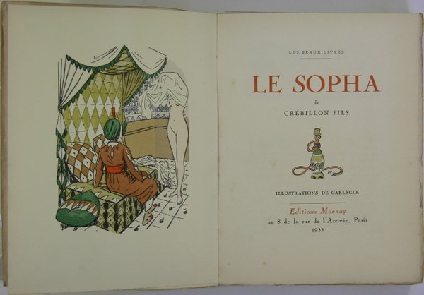 Editions Mornay, Paris, 1933. In/8 broché, couverture rempliée illustrée d’une vignette, illustrations de Carlègle : 30 compositions originales en couleur, dont un frontispice, une en-tête, 27 in-texte et un cul de lampe, 326 pages. Dos insolé avec léger manque en coiffe supérieur. Monod 3303. Exemplaire numéroté sur papier de Rives