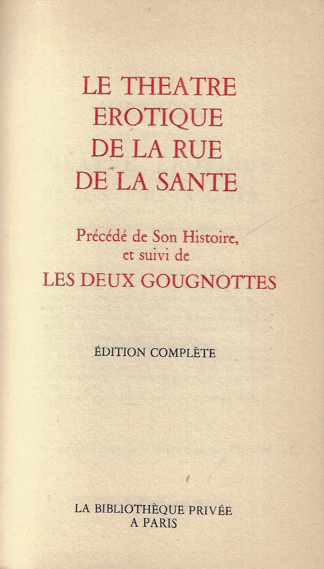 Le Theatre erotique de la rue de la sante : precede de son histoire, et suivi de Les deux gougnotte