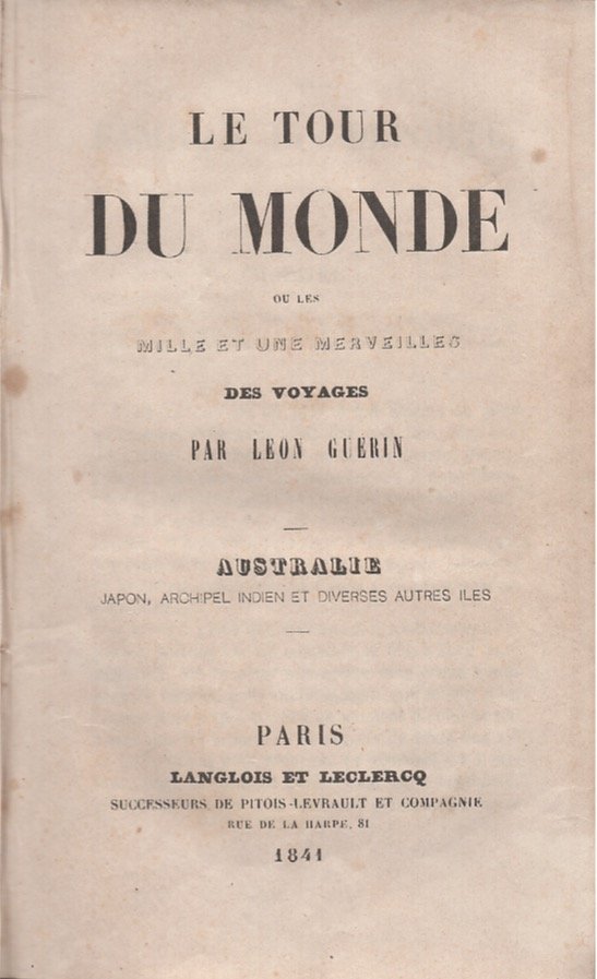 La famille du déporté, voyage en Australie, au Japon. Numerose incisioni nel testo. Timbro di possesso alla guardia. Tutti i margini leggermente consunti