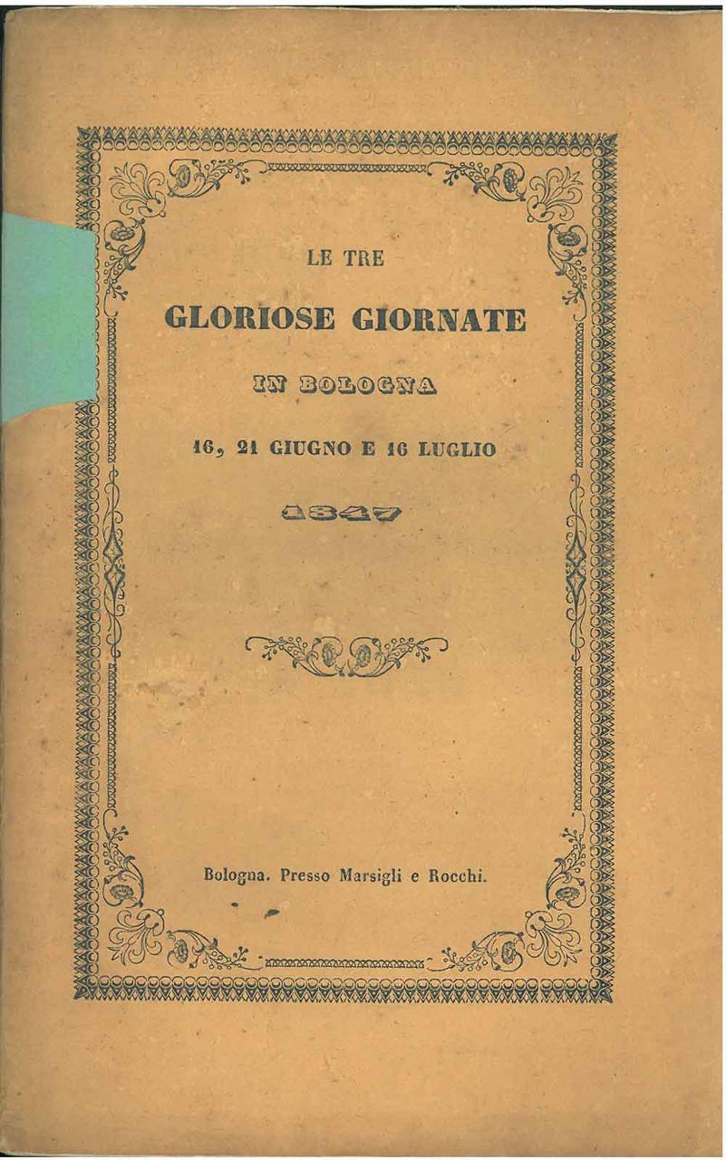 Le tre gloriose giornate in Bologna, 16, 21 giugno e 16 luglio 1847 sacre all'immortale Pio Nono