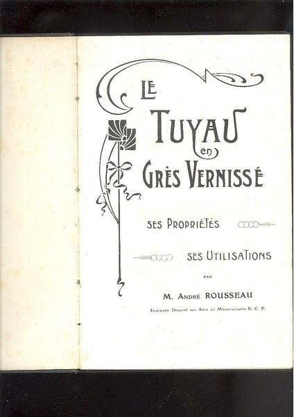 IN 8°, pp.104. LEGATURA EDITORIALE TELATA RIGIDA CON TITOLO AL DORSO. VOLUME RICCAMENTE ILLUSTRATO E TABELLE. 1 TAV. f.t. + v.r. CON LE TARIFFE DEI TUBI IN GRES VERNICIATO PER IL 1912. TESTO IN FRANCESE, OTTIMA CONSERVAZIONE. ID, 7010