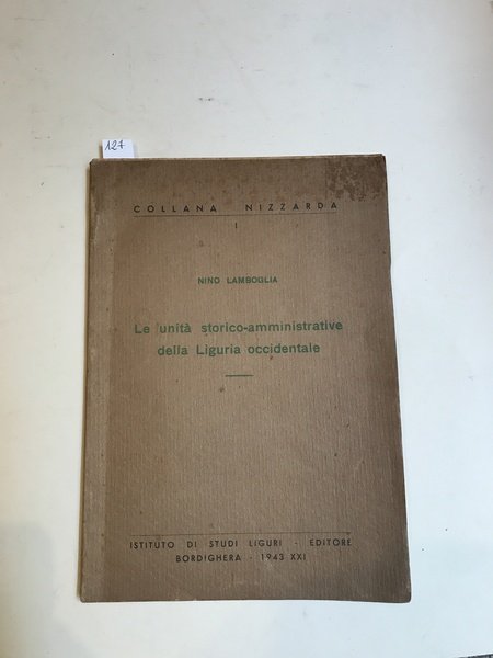 In-8°, pp. 27, 1 carta f.t. raffigurante la Liguria occidentale nella tavola Peutingeriana, 7 tavole di carte a colori più volte rip. raffiguranti i confini nei vari secoli dall'epoca romana fino al 1940, la tavola 2 è stata rilegata due volte, brossura editoriale . Collana Nizzarda I