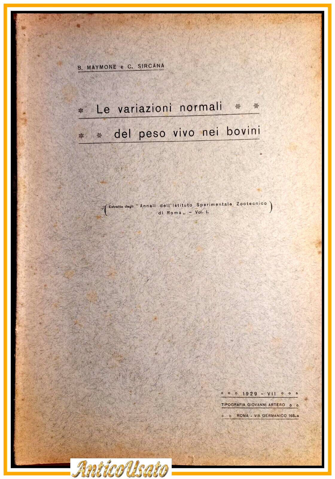 LE VARIAZIONI NORMALI DEL PESO VIVO NEI BOVINI di Maymone Sircana 1929 Libro