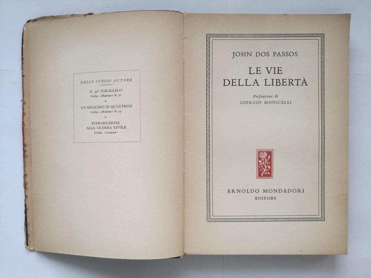 LE VIE DELLA LIBERTÀ di John Dos Passos 1948 Mondadori Libro Collezione Arianna