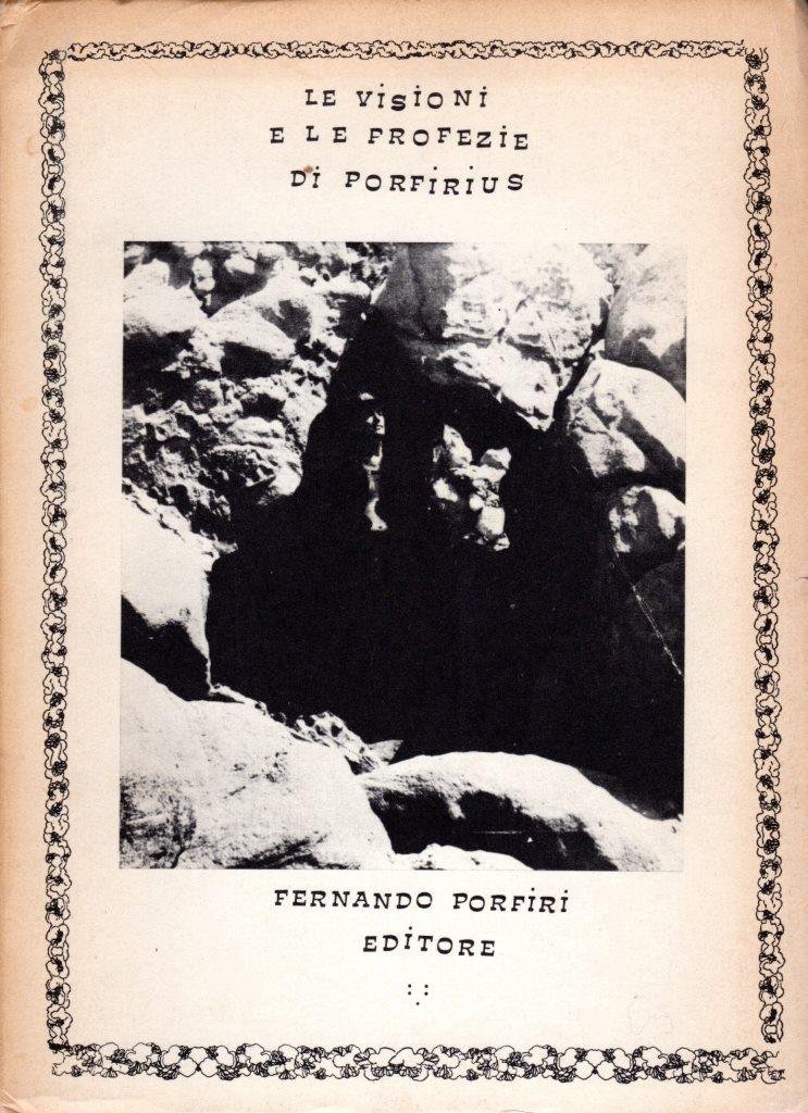 Le visioni e le profezie di Porfirius, senza data, pp. 189, formato 16 x 22.<BR>Copertina morbida illustrata con titoli in nero al piatto anteriore e sul dorso. Volume intonso. <BR>Due pagine strappate, altrimenti in ottime condizioni.
