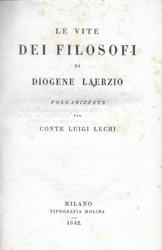 Le vite dei filosofi, volgarizzate dal Conte Luigi Lechi.