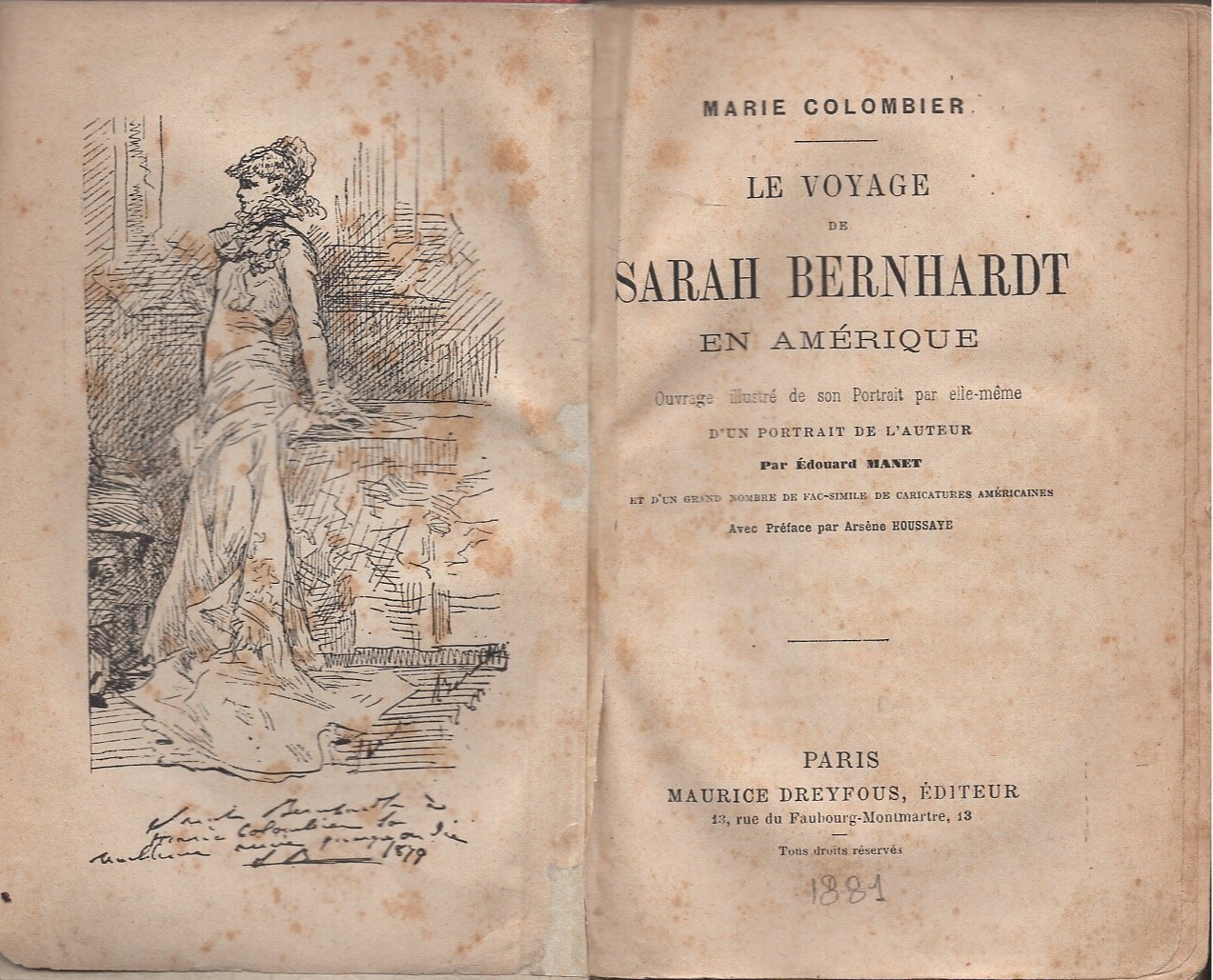 Ouvrage illustré de son Portrait par elle-meme. D'un portrait de lìAuteur par Edouard Manet et d'un grand nombre de fac-simile de caricatures américaines. Foxing diffuso