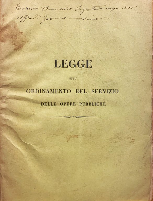 Legge suull'Ordinamento del Servizio delle Opere pubbliche
