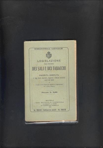 LEGISLAZIONE SULLA PRIVATIVA DEI SALI E DEI TABACCHI.<BR>RACCOLTA COMPLETA DI LEGGI, DECRETI, REGOLAMENTI, DISPOSIZIONI, ECC.