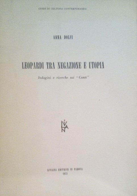 LEOPARDI TRA NEGAZIONE E UTOPIA - INDAGINI E RICERCHE SUI "CANTI"