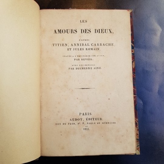 Les Amours des Dieux d'apres Titien, Annibal Carrache et Jules Romain. Gravée a l'eau-forte sur acier par Reveil. The love of the gods from titiano, annibale Carracci and Giulio Romano