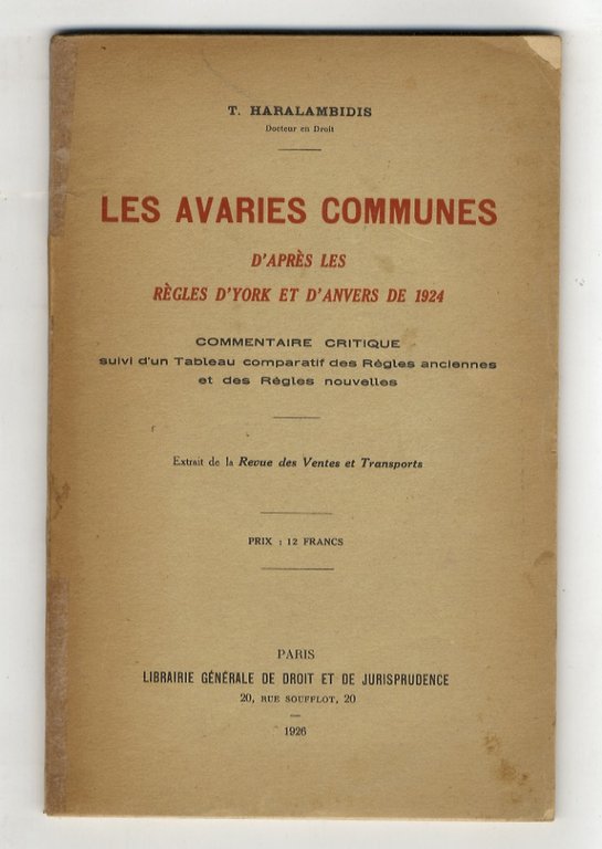 Les avaries communes d'après les règles d'York et d'Anvers de 1924. Commentaire critique, suivi d'un Tableau comparatif des Règles anciennes et des Règles nouvelles.