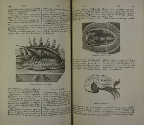 Fayard éditeur, s.d.(1886). Fort volume in/8 reliure demi-toile simili chagrin noire, titre doré, nombreuses illustrations in-texte, 16 chromolithographies doubles in-fine, 1483 pages. Page de garde avec manque en bordure, manque la page de titre. Rousseurs. Vicaire col. 874, précise la date de 1886 et ajoute au titre “Grande cuisine, cuisine bourgeoise et cuisine des petits ménages”. Très rare, belles chromos.