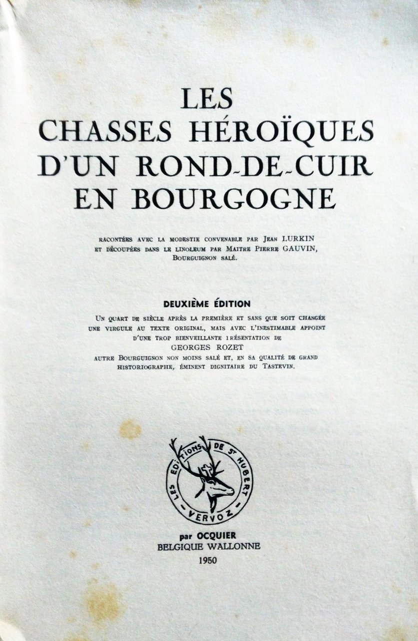 Les Chasses Héroïques d'Un Rond-de-Cuir en Bourgogne. Preface de Georges Rozet. Deuxieme edition.