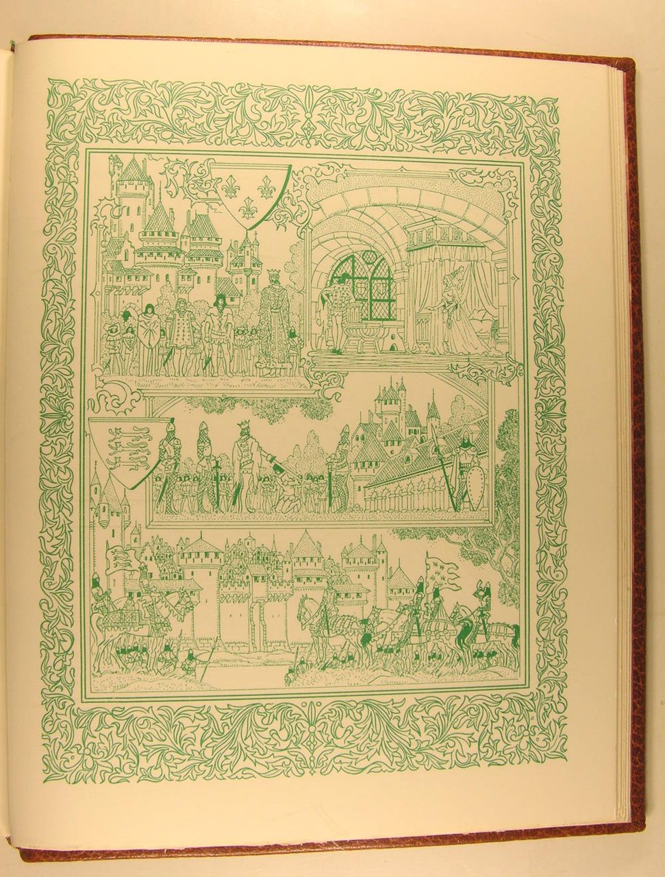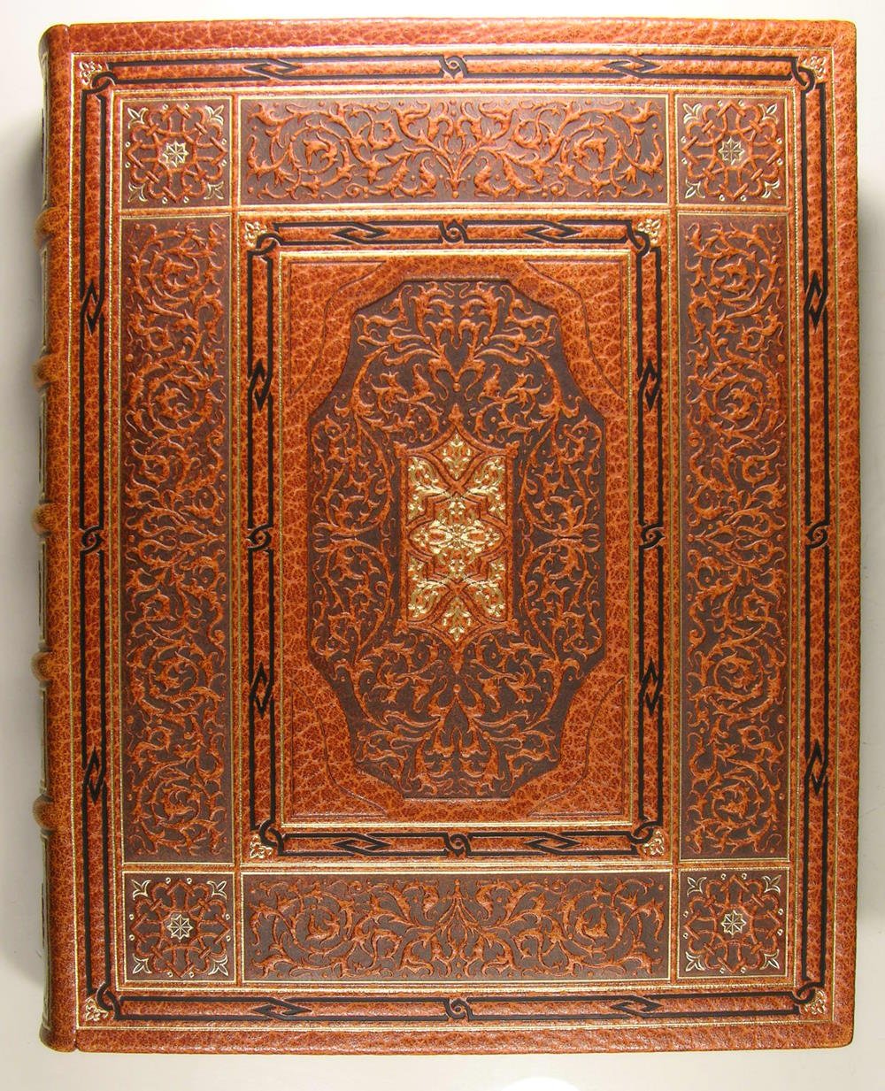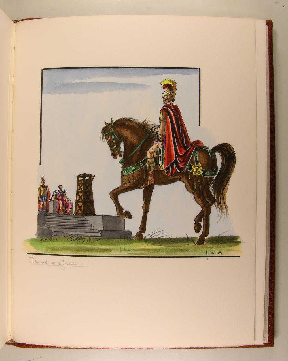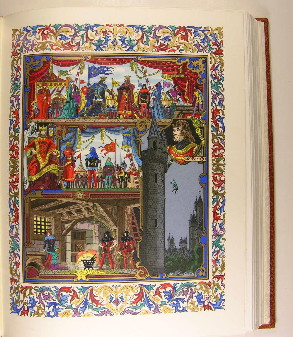 A l'enseigne du Chant des Sphères au 22 de l'avenue Borriglione à Nice, 1969-1974. 12 volumes, première et deuxième série, in/4, cuir havane, plats entièrement recouverts d'un décor floral poussé à froid à la plaque, rehaussé de filets et fleurons dorés, rappel du décor sur les dos à nerfs; doublures et gardes de papier marbré, têtes dorées, non rognés. Étuis (reliures de l'éditeur), Dos passés. Très belle édition illustrée par Jean Gradassi de miniatures coloriées au pochoir et rehaussées à l'or et au palladium, dont 2 frontispices sur double page, 72 miniatures hors texte, 72 bandeaux, et de nombreux culs-de-lampe. Tirage limité à 3.530 exemplaires numérotés. 3444. Exemplaire complet du certificat d'authenticité de l'éditeur. Avec une suite en vert anglais de 6 planches,et une aquarelle originale, parmi les 420 exemplaires numérotés de 181 à 600. Traduction de F. Victor Hugo. La Mégère apprivoisée. Roméo et Juliette. 1 volume - Hamlet. Le Songe d'une nuit d'été. 1 volume - Le Marchand de Venise. Othello. 1 volume - Macbeth. Le Roi Lear. 1 volume - Coriolan. Les Joyeuses Commères de Windsor. 1 volume - Richard III. Henry VIII. 1 volume - Les Deux Gentilshommes de Vérone. Antoine et Cléopâtre. 1 volume - Le Soir des rois. Henry V. 1 volume - Peines d'amour perdues - Richard II. 1 volume - Comme il vous plaira. Mesure pour mesure. 1 volume - Beaucoup de bruit pour rien. Jules César. 1 volume - Le Roi Jean. Tout est bien qui finit bien.