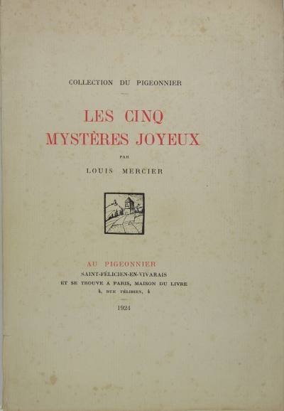 Editions du Pigeonnier, St Félicien en Vivarais, 1924. In/8 broché, couverture illustrée d’une vignette, dessin de Georges DESVALLIERES, ornements de P. BURNOT, 25 pages. Non coupé. Rousseurs sur la couverture. Poésie. Louis-Émile Mercier, né à Coutouvre le 6 avril 1870 et mort à Saint-Flour le 27 novembre 1951, poète et journaliste français, rédacteur en chef au Journal de Roanne. Ce méditatif avait le goût des grandes compositions symboliques, dans "le poème du vent" ou autres compositions inspirées par la nature et la vie rustique de sa terre du Forez. Il était porté également par les sujets religieux, comme dans la pièce intitulée "Le Christ ou Légende pour les vitraux d'Ambierle".