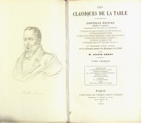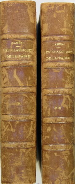 Firmin Didot, Paris, 1855. 2 volumes In/12, reliure demi-basane havane, dos à nerfs, volume 1 : 554 pages, volume 2 : 529 pages, nouvelle édition, 8 portraits hors texte. Usures sur le dos, rousseurs, traces de doigts sur quelques feuillets, pâles auréoles éparses. Brillat Savarin, Grimot de la Reynière, Marquis de Cussy, Berchoux, Colnet, . avec une piquante description des effets de la maigreur sur les femmes (p.206). en tome 1 (physiologie du goût) ; l’art culinaire chez les peuples anciens, chez les peuples modernes (exemple de menus au cours des siècles), un chapitre sur les praticiens les plus fameux (Apicius, Vatel, Carême), chansons et poésies diverses. Vicaire col. 181. Rare avec les 8 portraits.