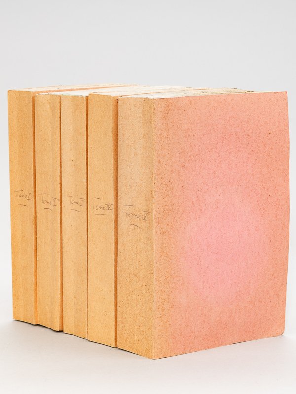 On y a joint l'Abrégé de la Vie de César ; et pour compléter son Histoire politique et militaire, un Précis des Affaires de Rome, année par année, 5 vol. in-8 br. sous papier fort postérieur, Chez Nicolle, Debray, J.-M. Eberhart, Paris, 1809, I : 2 ff., 440 pp. et 1 f. ; II : 2 ff., lxxvvij-383 pp. ; III : 2 ff., 410 pp. avec une carte dépliante ; IV : 464 pp. avec une carte dépliante (pp. 6-13 reliées en fin d'ouvrage) ; V : 518 pp. avec 4 cartes dépliantes Rare exemplaire bien complet des 5 tomes et des 6 cartes dépliantes. Etat satisfaisant (travaux de vers et marge un peu rognée en queue en tome 3, mouill. en marge intérieure au tome 5, ensemble sous couverture en papier fort XXe siècle, bon état par ailleurs). Brunet, I, 407