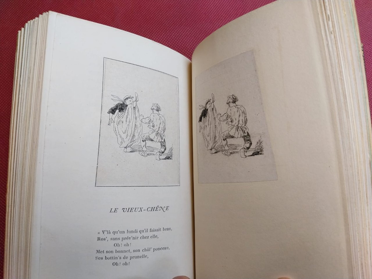 In-8° (190 x 120 mm.), pp. 277, (4), un ritratto dell'autore in triplo stato di stampa, frontespizio inciso in doppio stato, e da un secondo ritratto inciso da Delâtre, circondato da piccole scene parigine. Il volume comprende inoltre diverse opere dell'autore tirate in triplo stato - in nero, sanguigna e bistro - e 24 acqueforti in doppio stato, normali e su carta 'chine', dovute a Félicien Rops (frontespizio e 18 vignette) e Émile Thérond. Splendida legatura di Huser, in pieno marocchino blu notte tendente al nero, con dorso a quattro nervi e titolo in oro, dentelle interna e tagli dorati, custodito in elegante cofanetto. Brossura editoriale originale conservata all'interno e ex libris nobiliare applicato al piatto anteriore. Edizione originale stampato su 'vélin fort', contenente una tiratura a parte su carta 'chine' di tutte le vignette, che valorizza la raffinatezza del segno inciso e la cura tipografica dell'edizione.