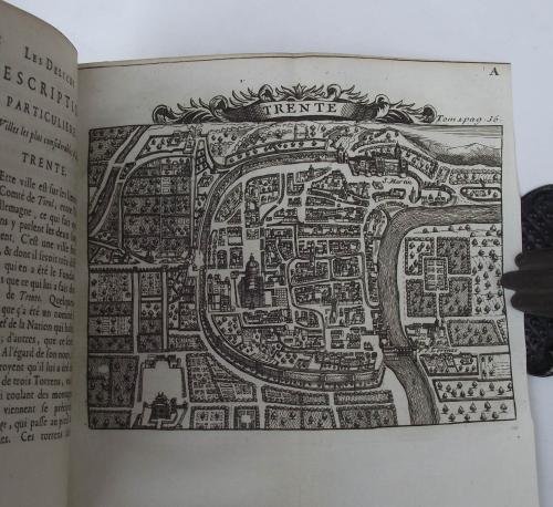 Quattro volumi di cm. 16, pp. pp. (16) 334 (2); (4) 359 (1); (4) 302; (4) 266 (30). Con antiporta figurata a ciascun volume, due carte geografiche ripiegate e 151 tavole fuori testo, molte delle quali ripiegate. Il tutto finemente inciso in rame. Solida ed elegante legatura coeva in piena pelle, dorsi a nervi con titoli e ricchi fregi. Solo un piccolo foro di tarlo che interessa parte delle carte dell'ultimo volume ed i ferri al dorso dello stesso volume appena percettibilmente diversi. Esemplare peraltro fresco, marginoso ed in eccellente stato di conservazione. Bell'edizione, in cui le tavole risultano particolarmente ben incise. Non comune soprattutto quando completa di tutte le tavole come nel presente esemplare. Cfr. Fiammetta Olschki (575); D'Ancona p. 123.