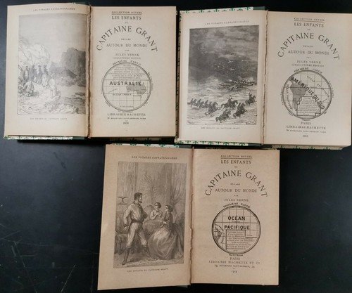 LES ENFANTS DU CAPITAINE GRANT voyage autour monde 3 volumi di Jules Verne 1925