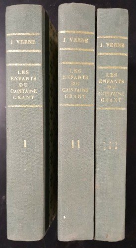 LES ENFANTS DU CAPITAINE GRANT voyage autour du monde 3 volumi di Jules Verne. In lingua francese. Hachette Editore 1921. 318+316+282 pagine, belle illustrazioni b/n nel testo e fuori testo. Belle copertine non originali in mezza tela. Dimensioni 11,5x18 cm. Stato di conservazione: molto buono.(pagine normalmente ingiallite)