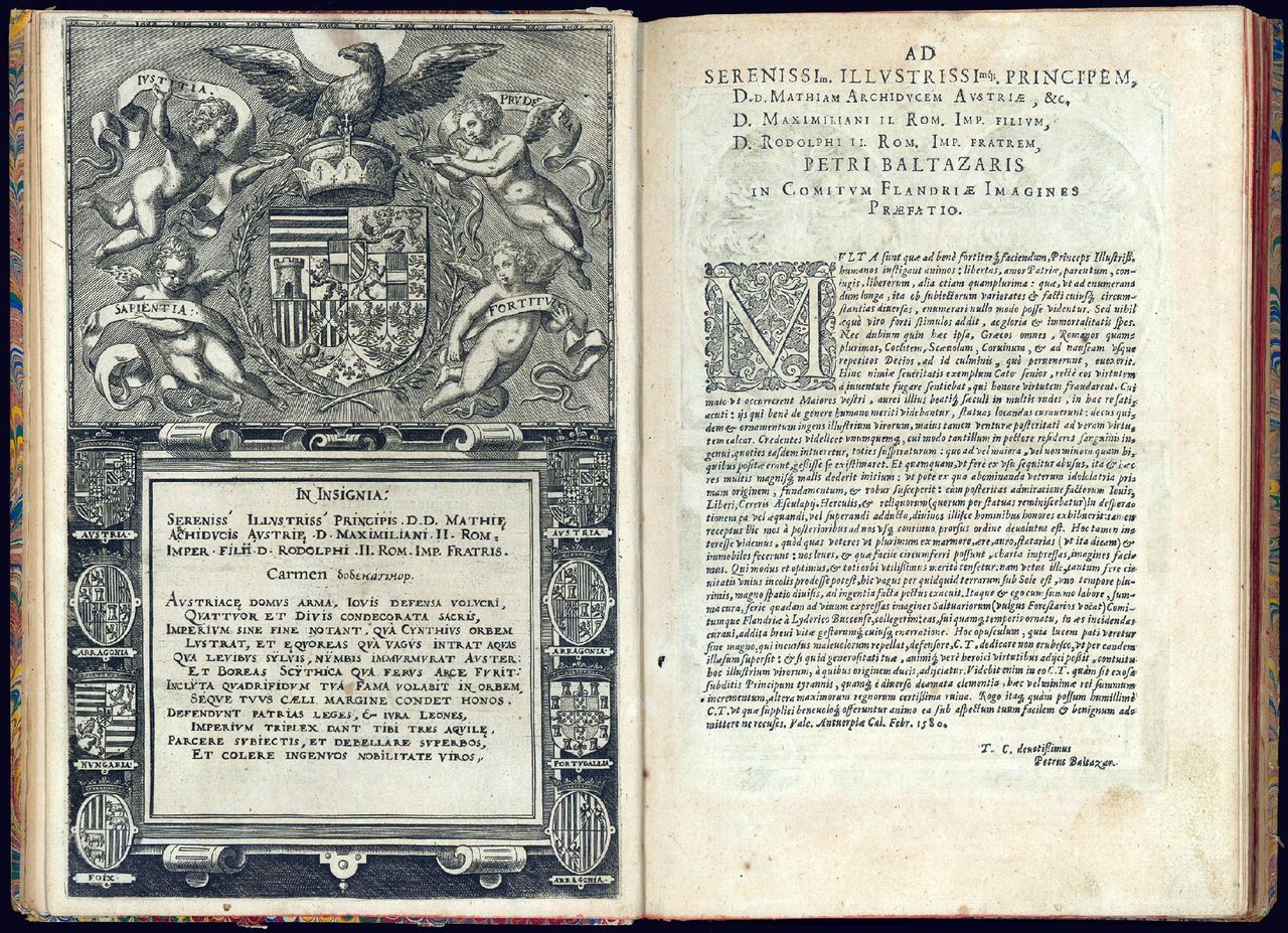 Seconda edizione (la prima era apparsa nel 1578) che reca la stessa dedica di Petrus Baltazar all'arciduca Mattia d'Asburgo datata Anversa, 1° febbraio 1580. I primi sette ritratti si riferiscono ai primi governatori delle Fiandre, i successivi trentatré raffigurano i conti delle Fiandre, a volte con rispettive consorti e figlie, fino a Filippo II di Spagna.
