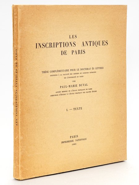 Les Inscriptions antiques de Paris. Thèse complémentaire pour le Doctorat ès Lettres (Texte et Planches - Complet)