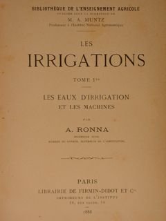 LES IRRIGATIONS, Tome Ier/II. Les eaux d’irrigation et les machines/ Les Canaux et les systèmes d'irrigation. Parigi 1988/1989.