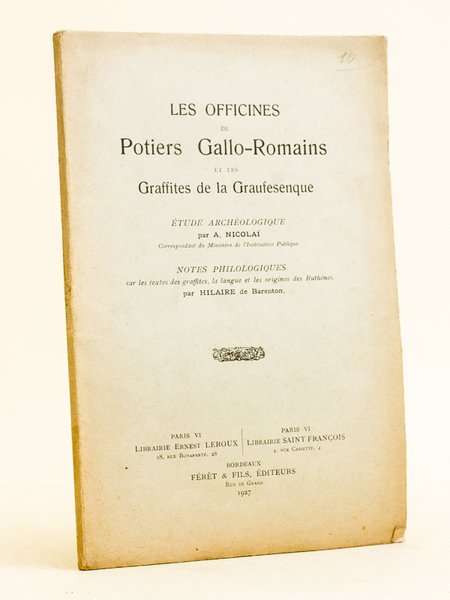 Les Officines de Potiers Gallo-Romains et les Graffites de la Graufesenque. Etude archéologique par A. Nicolaï. Notes philologiques sur les textes des graffites, la langue et les origines des Ruthènes par Hilaire de Barenton
