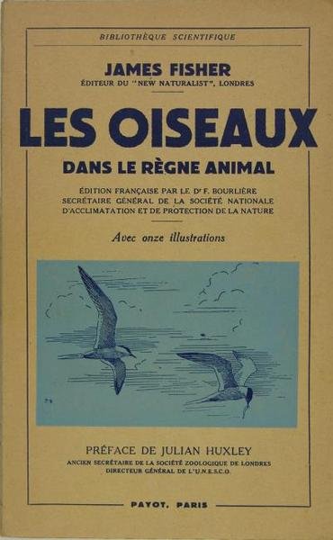 Payot, Paris, 1949. In/8 broché, couverture illustrée, onze illustrations in-texte, 224 p. Ouvrage en excellent état de fraîcheur. Editeur du “New naturaliste” à Londres. 17 feuillets de bibliographie James Fisher à toutes les qualités de l’auteur combinées à celles du zoologiste de métier. Ce livre fourni à l’amateur des bases scientifiques solides tout en révélant au zoologiste pour l’attrait de l’ornithologie sur le terrain.