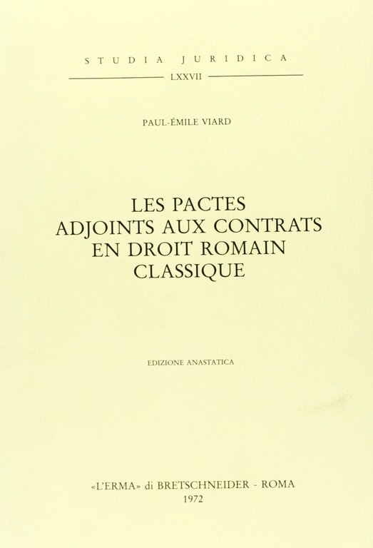 Les pactes adjoints aux contracts en droit romain classique (1929)