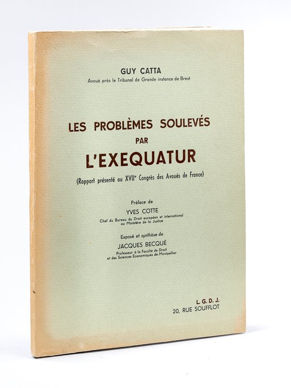Préface de Yves Cotte, exposé et synthèse de Jacques Becqué, 1 vol. in-8 br., L.G.D.J., Paris, 1967, 106 pp. Bon exemplaire (très bon état).