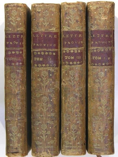 A Amsterdam, aux dépens de la compagnie, 1753. 4 volumes petit in/8 reliure plein veau du temps tacheté, dos lisse à décors doré et pièces de titre bordeaux, tranches rouges, tome 1 : 8 ff. de titre averttissement et table, 329 p. - tome 2 : 534 p. - tome 3 : 431 p. - tome 4 : 431 p. 5 ff. de tables. Exemplaires frais hormis un petit manque en coiffe du tome 3. Brunet T4.