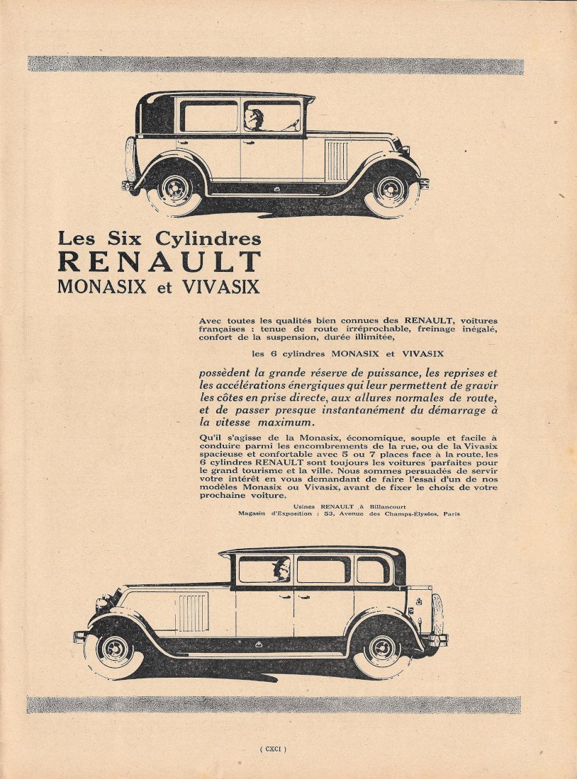 Les six cylindres RENAULT Monasix et Vivasix - Advertising 1928