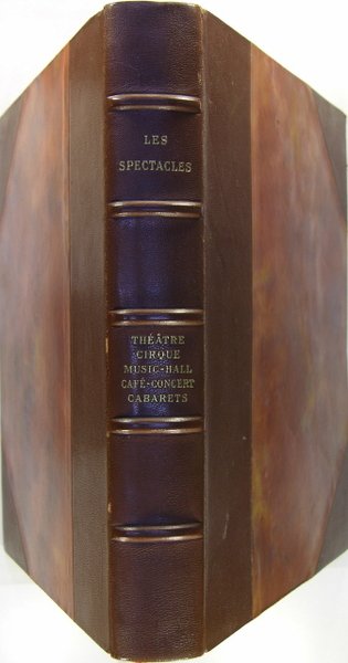 Editions du Cygne, Paris, 1931. In/4 reliure demi-chagrin marron à coins, dos à nerfs et titres dorés, doré sur tête, 364 pages, illustrations in et hors-texte en sépia, 15 planches hors-texte dont certaines en couleur. Le théâtre lyrique en France et en Europe, acteurs et auteurs, l’architecture du théâtre, le décor de théâtre, le costume, les cirques, le music-hall, le café-concert et la chanson, les cabarets littéraires et artistiques.