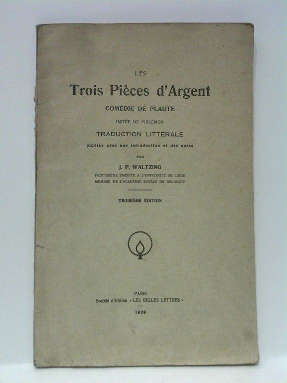 Les Trois Piéces d'Argent. (Comédie de.); Imitée de Philémon / Traduc. littérale publiée avec une introduction et des notes par J. P. Waltzing