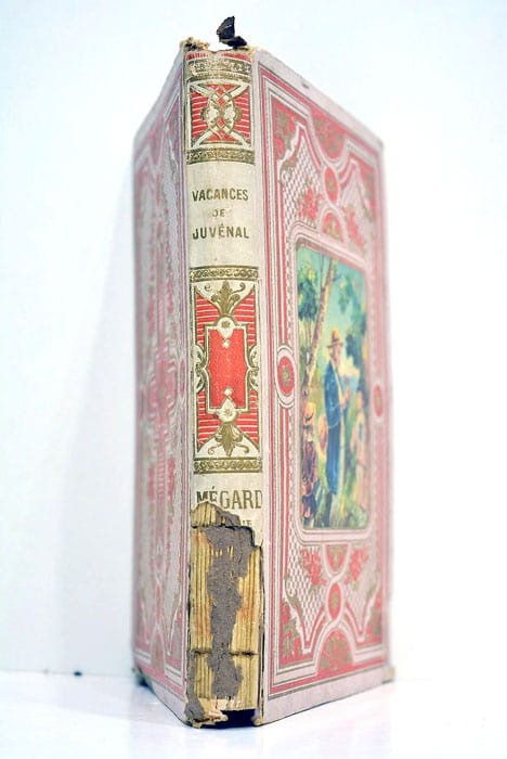 2 feuillets. 221 pages. 2 feuillets. (22,5x14,5 Cm). Cartonnage de l'éditeur en couleur. Dos lisse doré. Dos très abimé avec la partie inférieure manquante. Coiffes manquantes. Quelques déchirures sur la couverture. Coins émoussés. Taches. Papier très bruni.