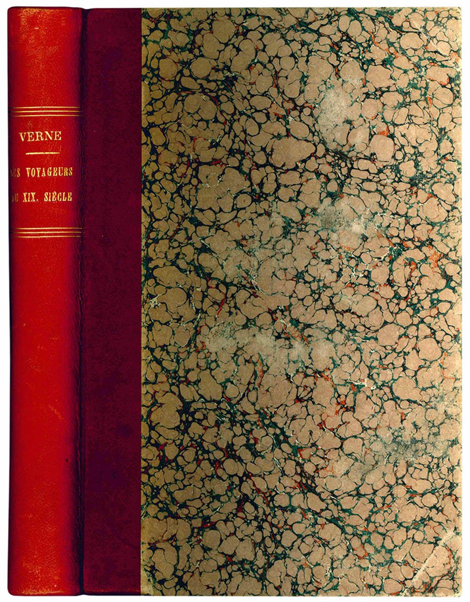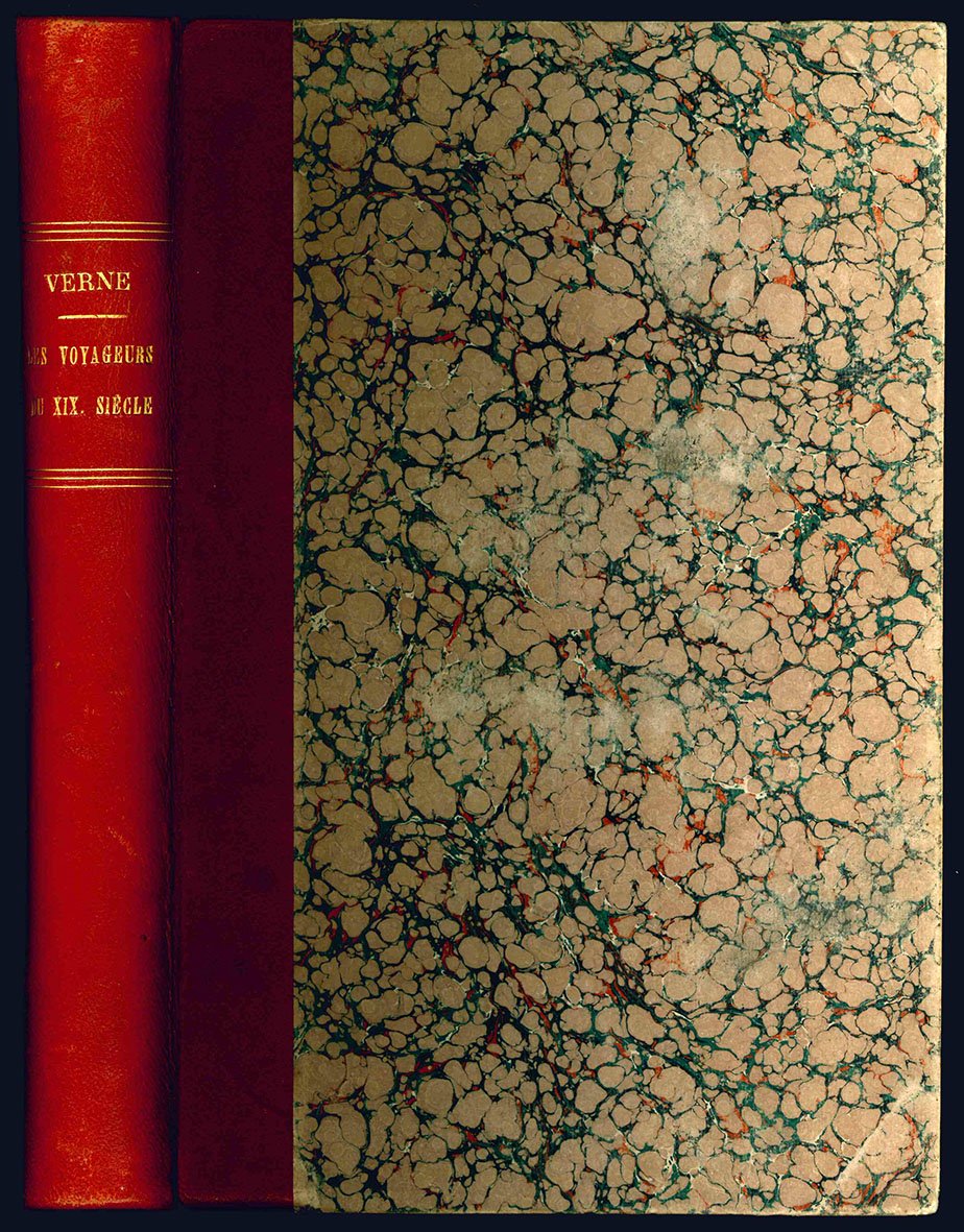 In 8vo gr. (mm 280x180); pp. (8), 428 e 8 pp. di Catalogo Hetzel. Legatura in mezza pelle rossa di poco posteriore, con titolo e filetti in oro al dorso. Copia intonsa e a pieni margini, che conserva le copertine originali, anche se un po' sporche. La copia, nonostante presenti leggere fioriture e sia ingiallita in modo uniforme, risulta molto genuina e con illustrazioni molto nitide. Fa parte della collezione: "Histoire generale des grands voyages et des grands voyageurs".