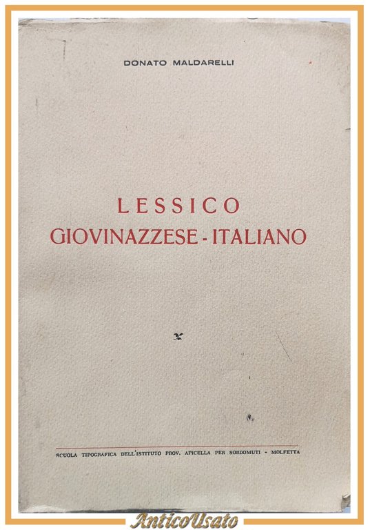 LESSICO GIOVINAZZESE ITALIANO di Donato Maldarelli 1967 Apicella libro dialetto
