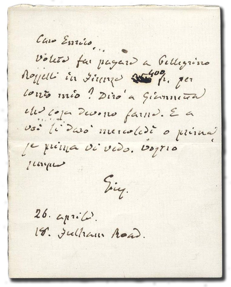 - (Londra), 26 aprile (s.d. ma 1861-1872), 18 Fulham Road,